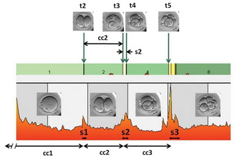 On procède à l’analyse informatique avec l’enregistrement du développement embryonnaire (la fréquence des images est d’une une fois toutes les 20 minutes).